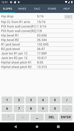 As seen in the screenshots, extra info is provided for hips and valleys included sheeting angles, hip drop, hip bevels and more.